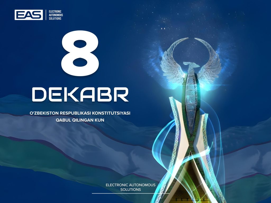 Коллектив Electronic Autonomous Solutions поздравляет вас с Днём Конституции Республики Узбекистан! Конституция — это фундамент нашего государства, гарант прав и свобод граждан, основа для развития и процветания страны. Этот день напоминает нам о ценности независимости, единства и стремления к прогрессу. Мы гордимся тем, что наша работа вносит вклад в технологическую независимость Узбекистана и укрепление его […]